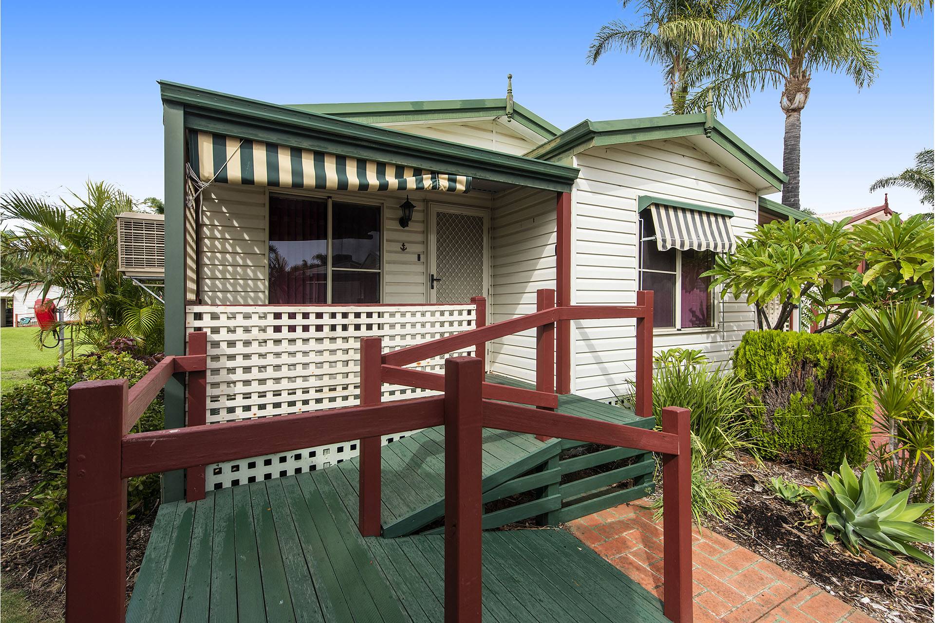 This "Royale" design park ome has 2 bedrooms with the main bedroom having a built-in robe. There is a separate bathroom, laundry and toilet and back entrance looking out over open area and gardens. Open plan living to the lounge, dining and kitchen with ducted evaporative air conditioning throughout. There is a ramp from the front verandah and another ramp at the back of the house for easy access. New carpets has been laid throughout and an updated kitchen. You have your own storage shed at the back of your single carport to store those extra items.