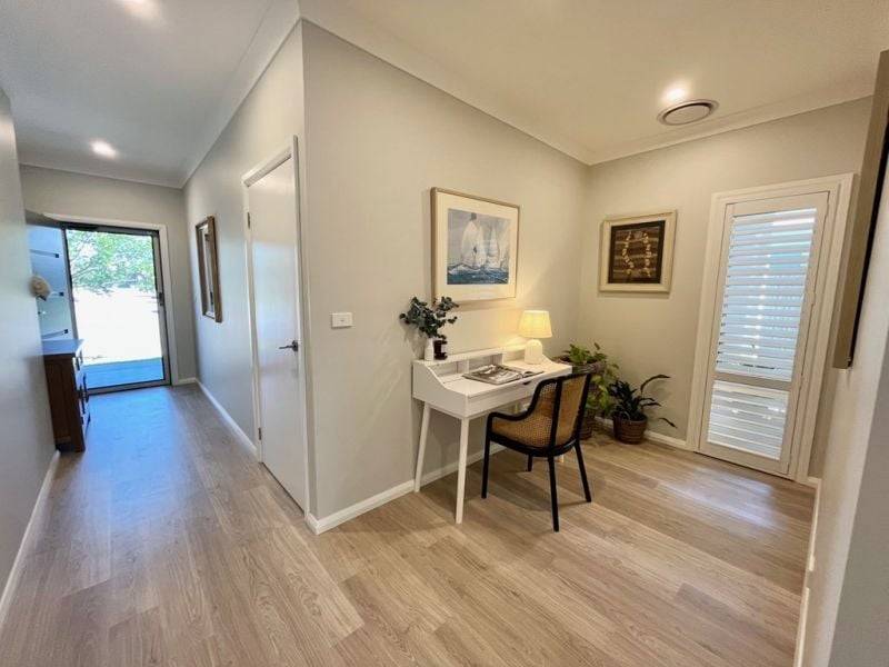This perfect 2 bedroom, 2 bathroom home with study nook and drying court offers the ideal blend of comfort, style, & convenience. Located at the end of the main boulevard on the boundary of the community this delightful home offers a serene lifestyle. Appreciate the special outdoor space, abundance of natural light and comfortable living spaces. Welcome to your perfect home within the Sunrise Lifestyle Resort.