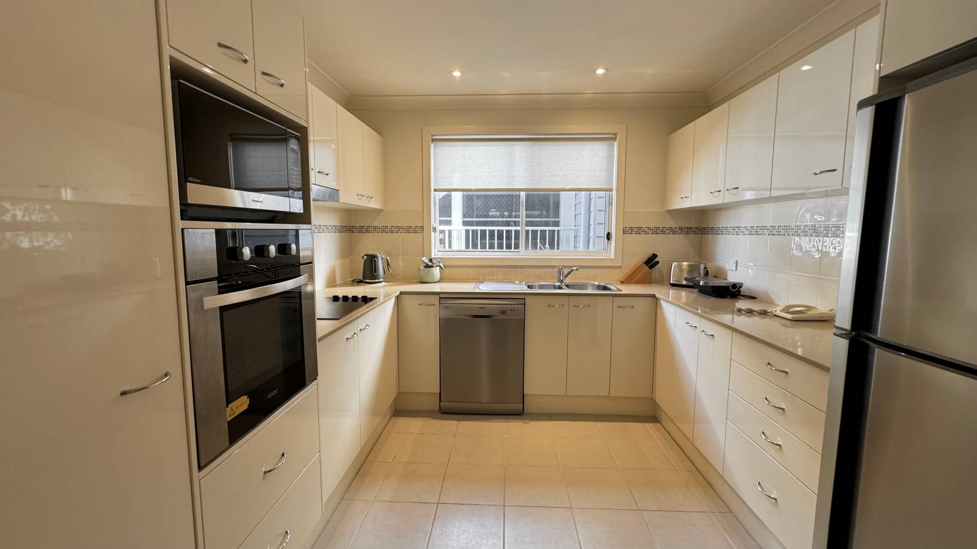 Stepping into the sleek modern kitchen, you can enjoy cooking up culinary delights with ease with fixtures such as a dishwasher, electric hotplate and convenient wall oven and features such as ample cupboard space with large pantry and pot draws, stone bench tops and large fridge space.