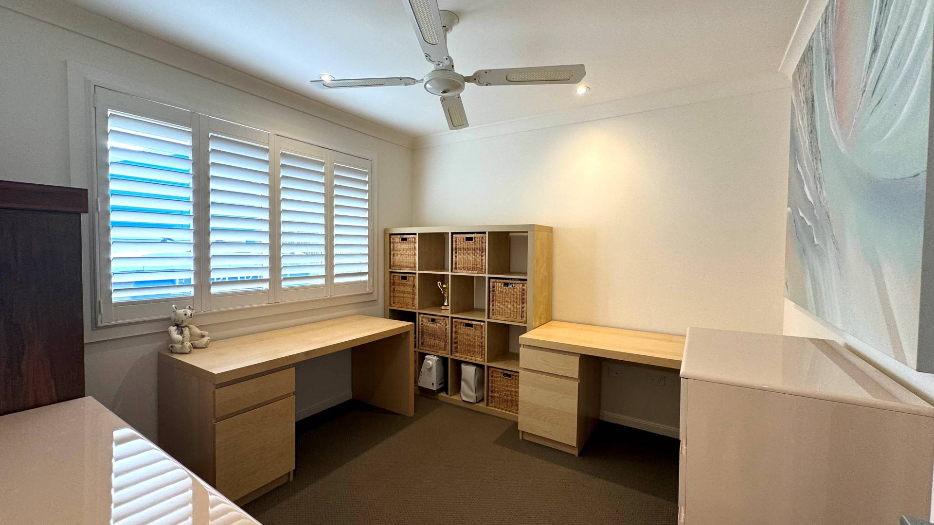 The home also boasts modern blinds and plantation shutters for that elegant clean look.