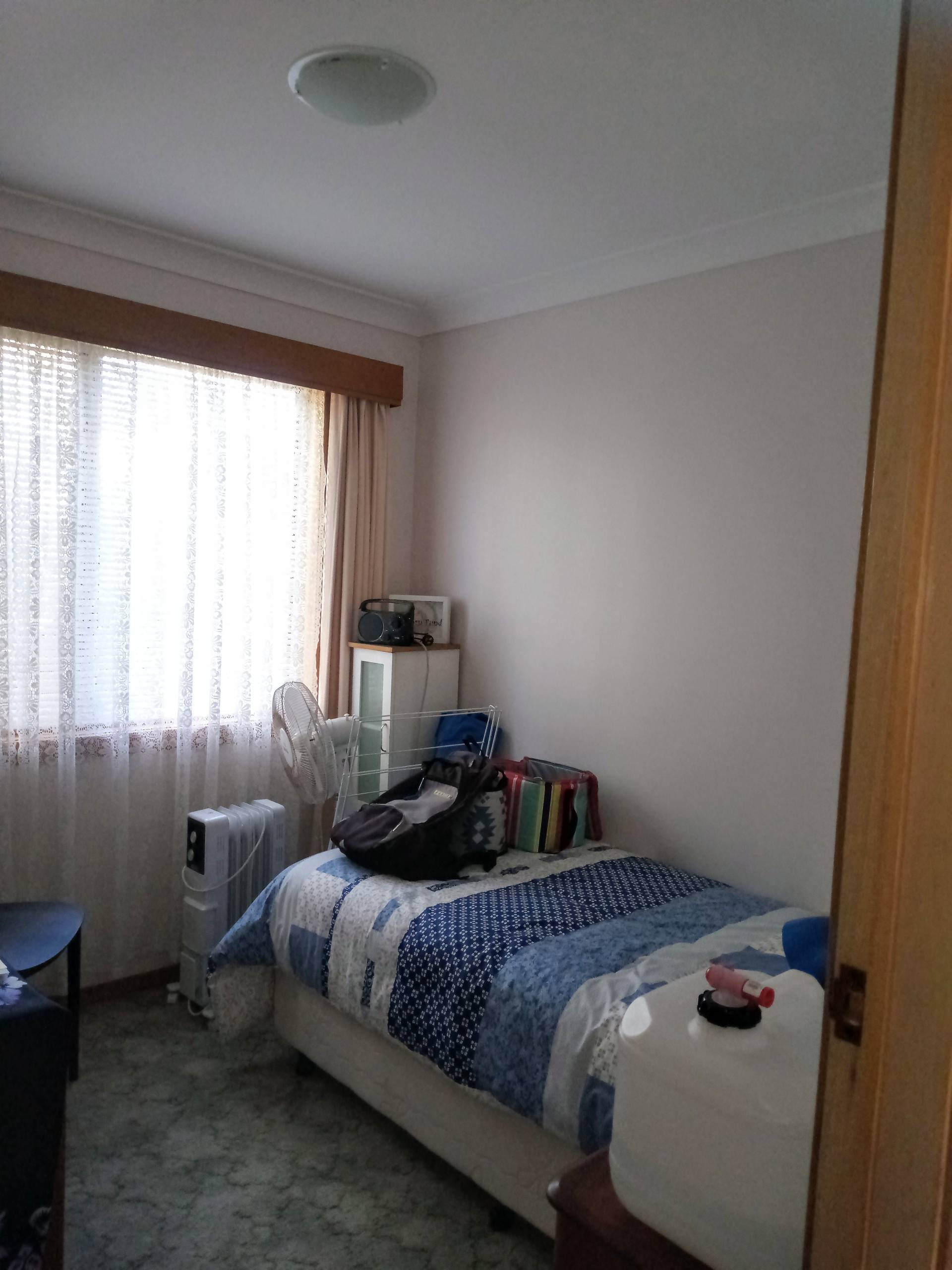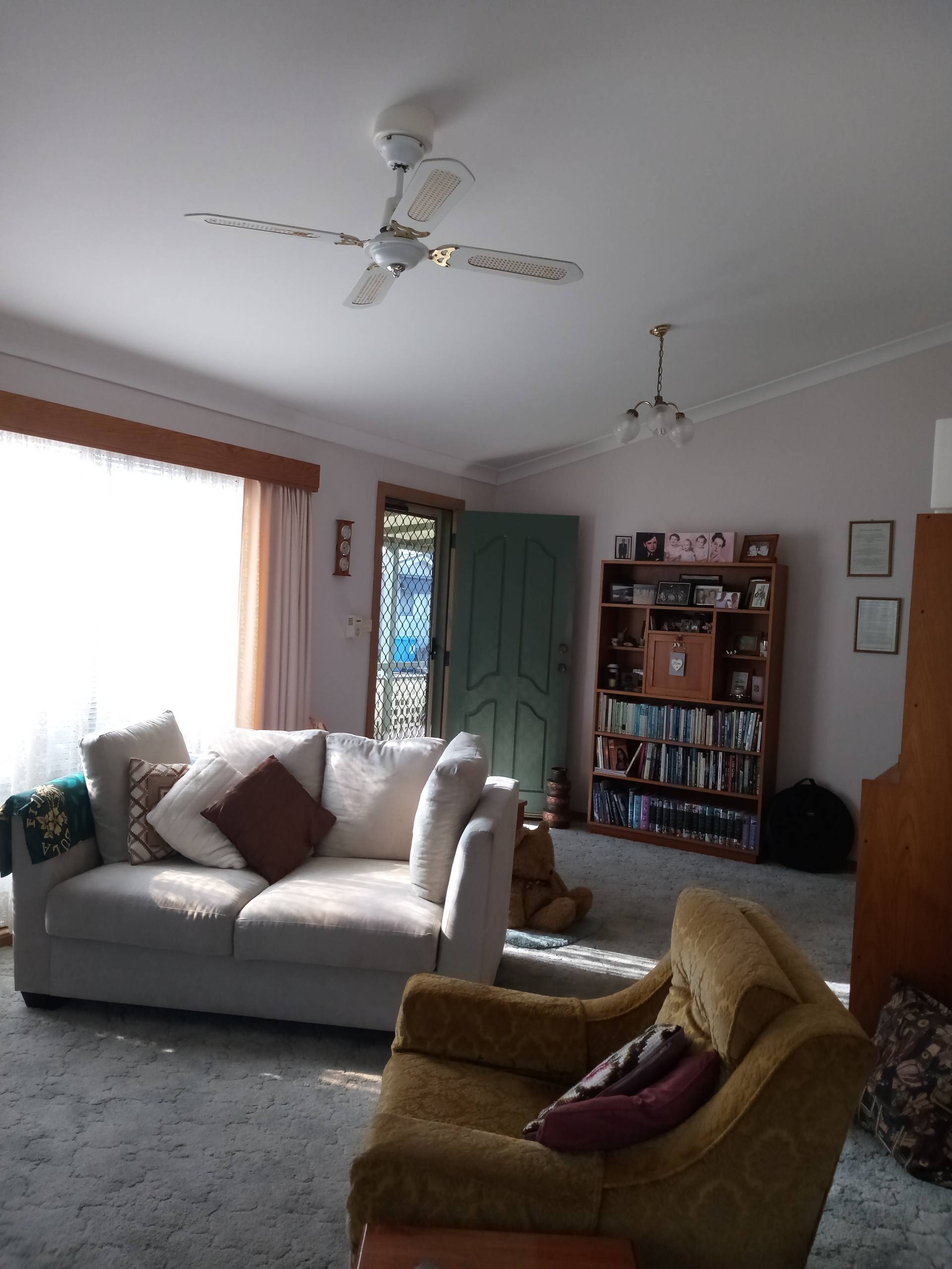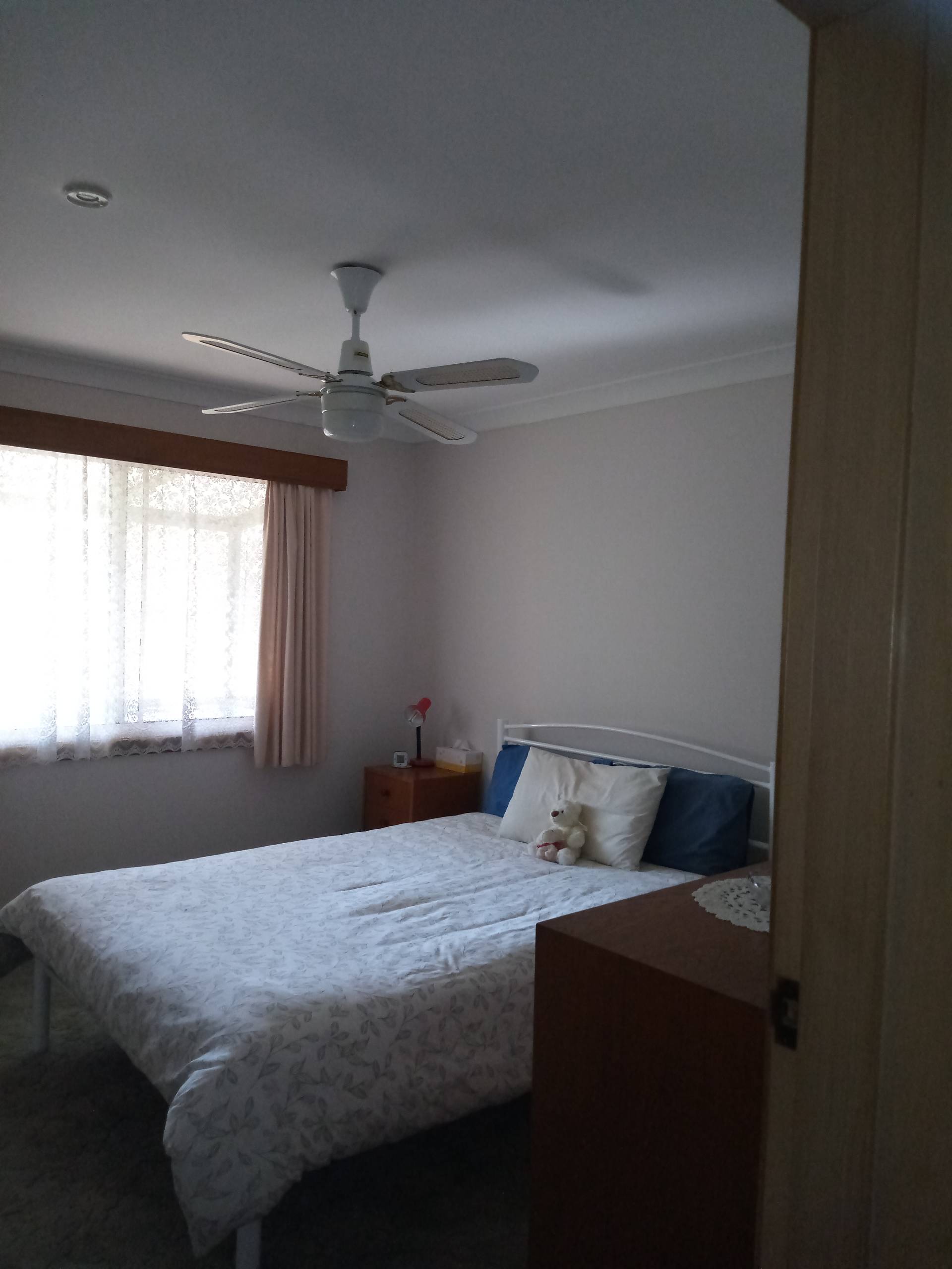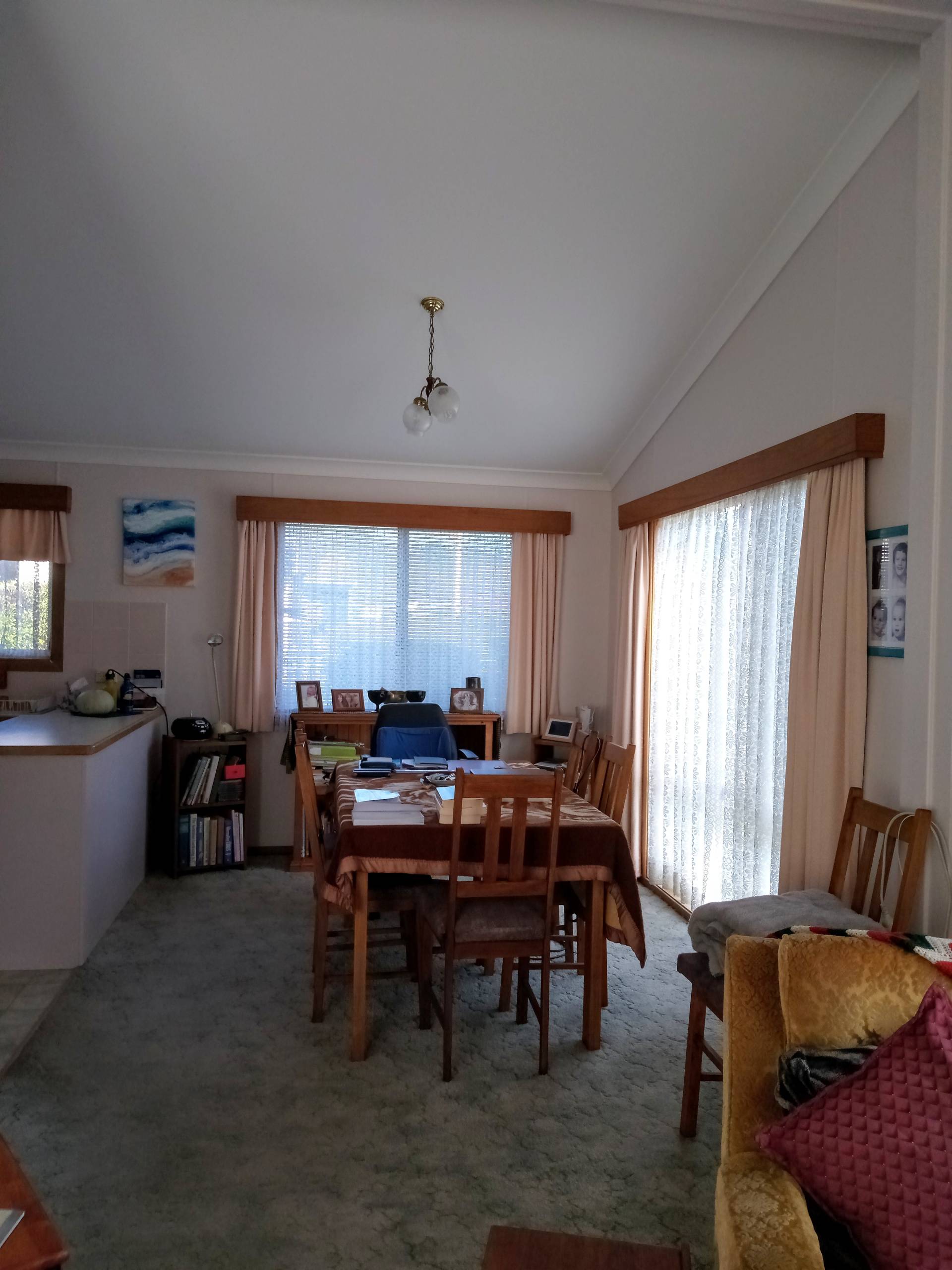 Step inside to high ceilings and a light-filled layout, with separate lounge and dining rooms providing space to relax or entertain. The generous main bedroom includes built-in storage, while the bathroom features a walk-in shower and vanity, with a separate toilet and laundry for added convenience.