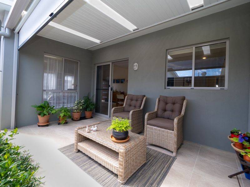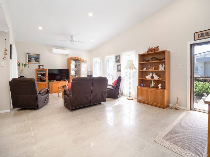 Contemporary open plan design with the living area flowing to a screened patio. Easy care tiles throughout with carpet in the bedrooms this home has been well maintained and is ready to have someone move straight in. The home is wheel chair friendly and has grab rails in the bathrooms. 6.6kw solar panels and a 5kw Tesla solar battery take care of the power bills.