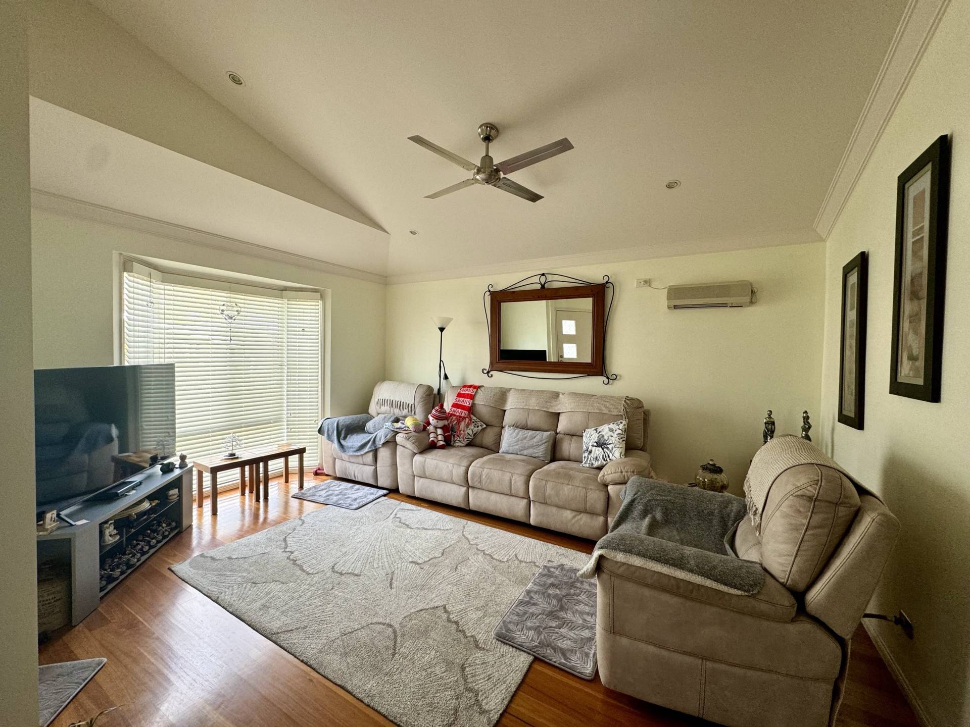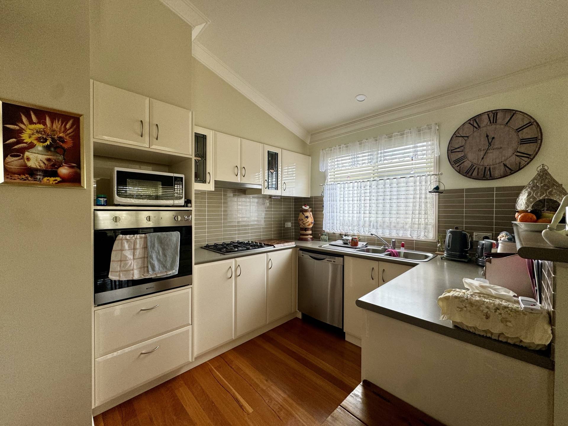 The heart of the home is the large kitchen, which seamlessly flows into the dining room and a cozy loungeroom featuring a beautiful bay window. Outside, the backyard basks in ample sunlight, perfect for gardening or relaxation, and includes a handy garden shed for extra storage.