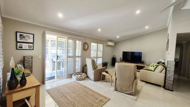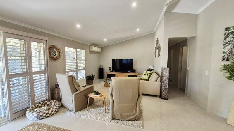 A sunny corner block that has water views over the natural watercourse. Watch the wild life from the bay window in the well appointed kitchen. This home presents a rare find in any Lifestyle Community. North facing large deck for entertaining. 3 large bedrooms, 2 with built-ins and an ensuite. Freshly painted exterior in 2024 and near new carpets, nothing to do but move in.