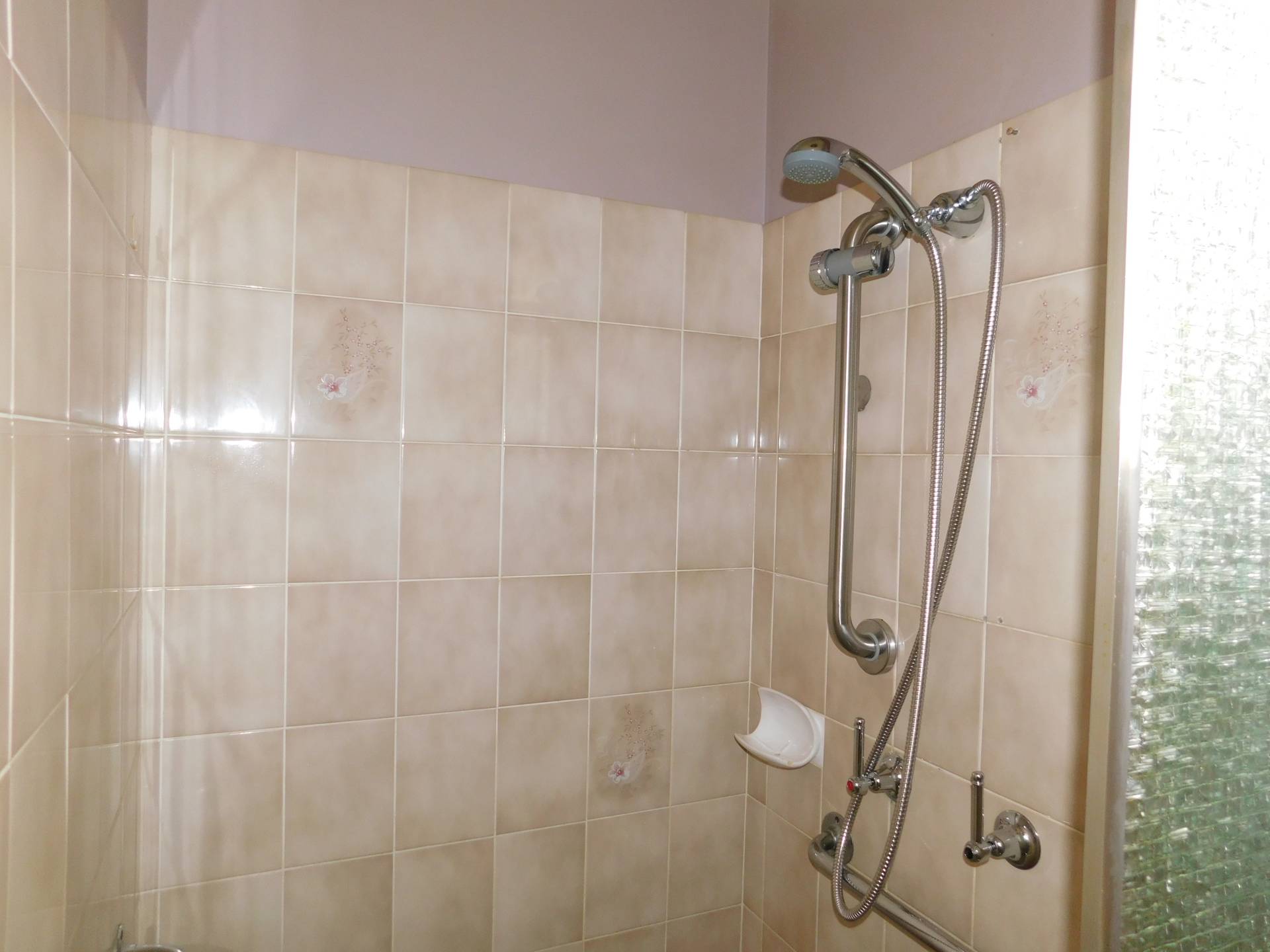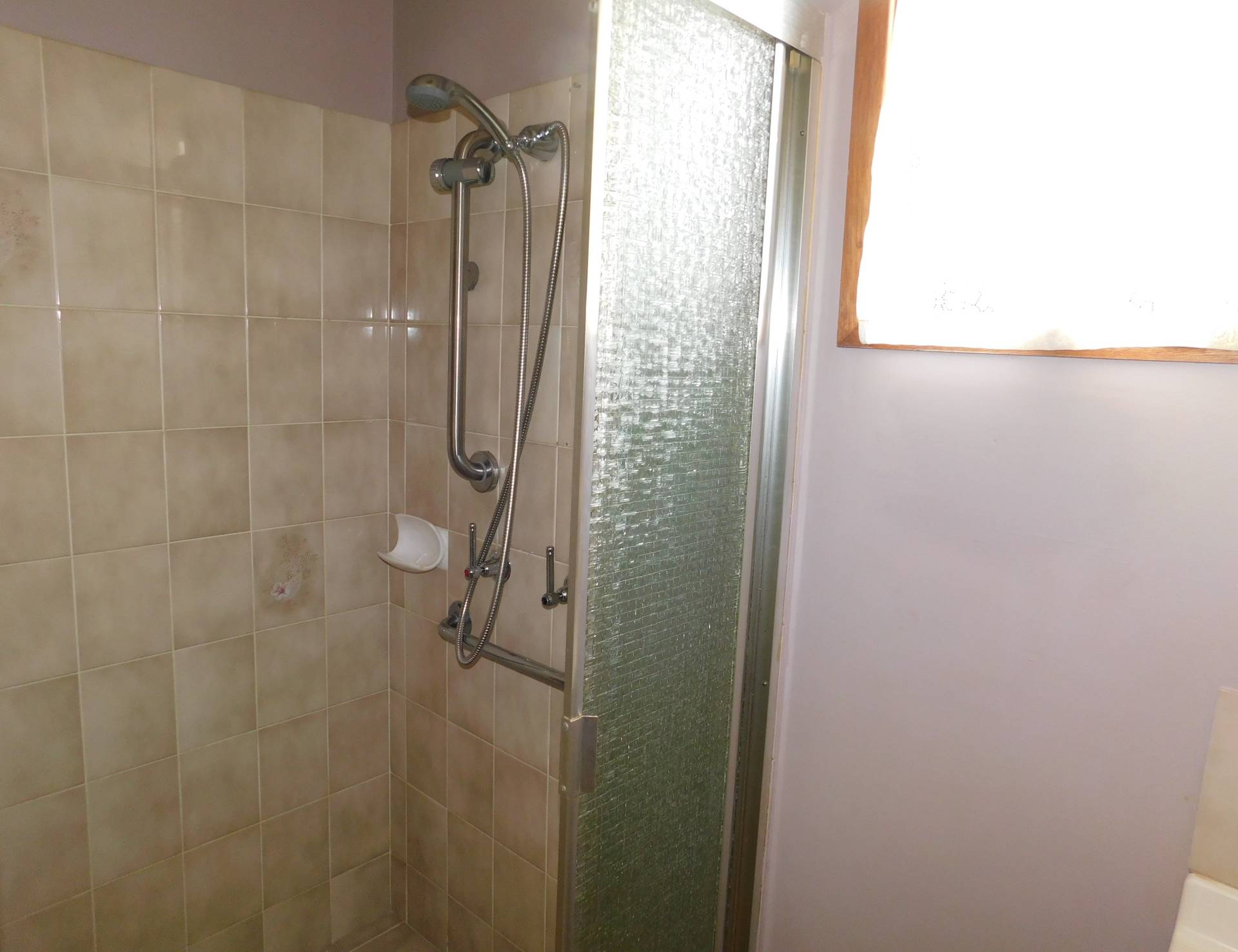 Bathroom: Bathroom has a walk-in shower with handrail and the toilet is separate.