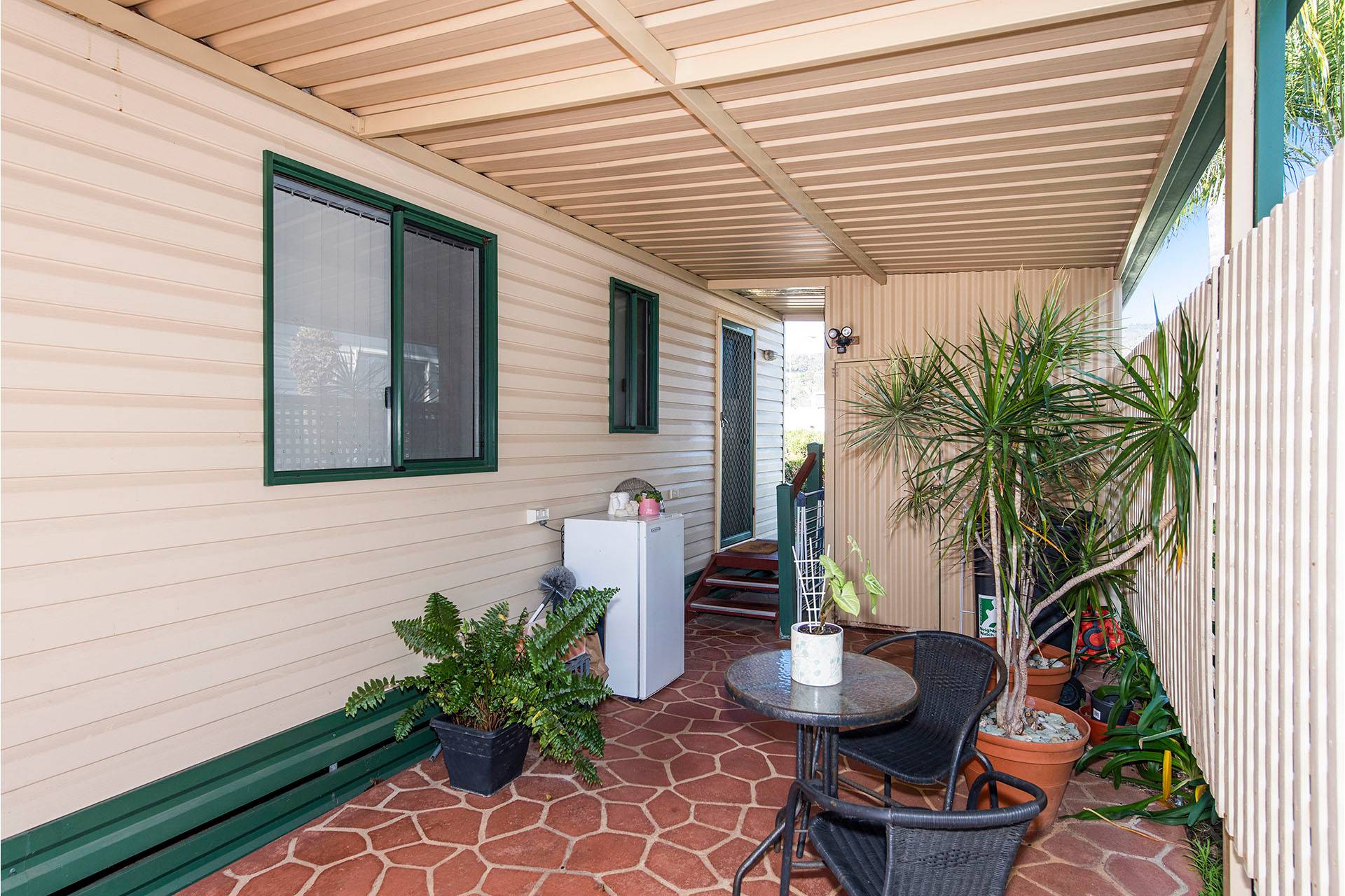 There is a double carport that comes with your own storage shed and access in through the laundry.