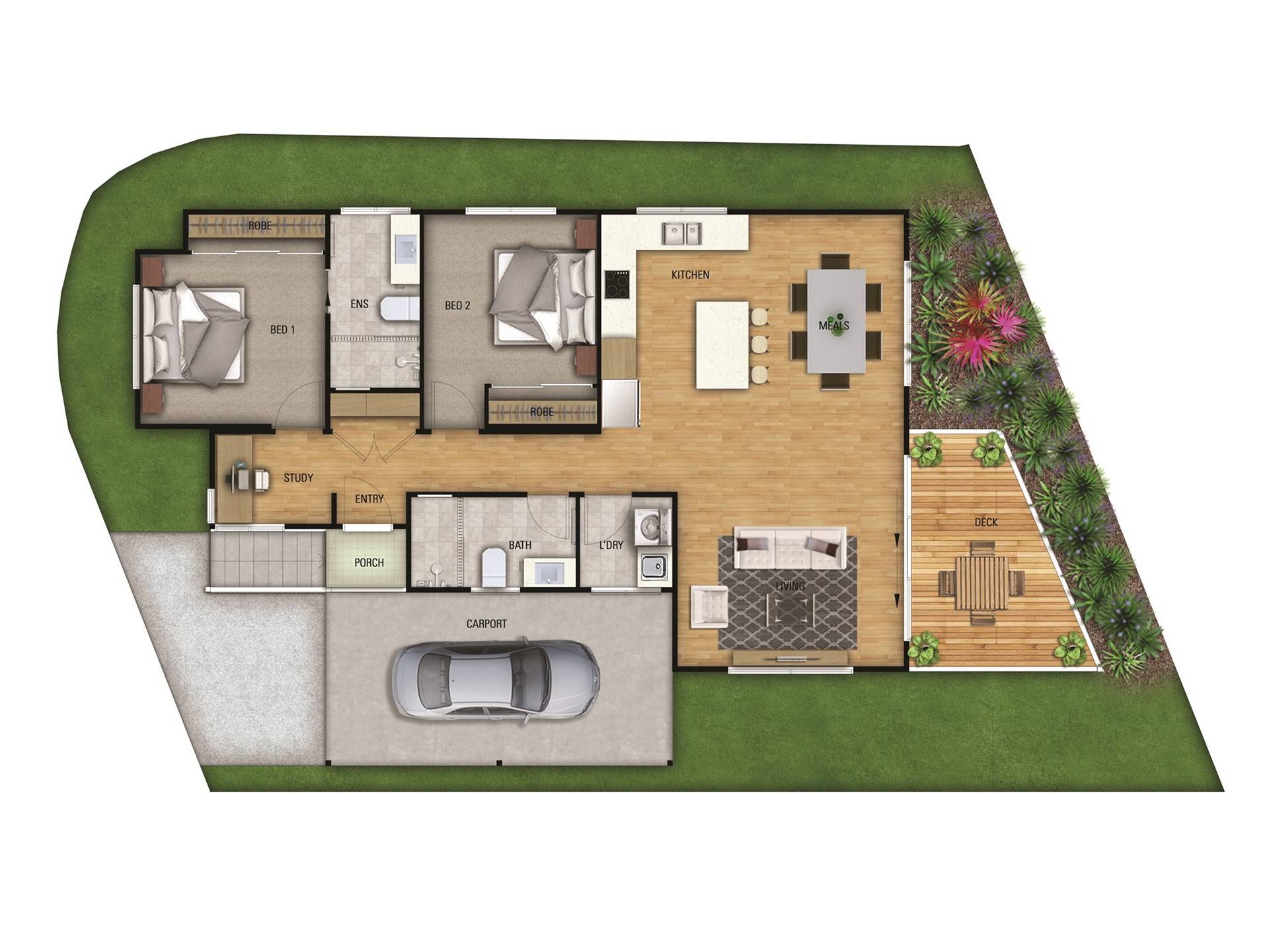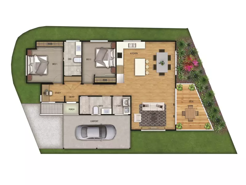 Finished in the calming Standard Coastal colour scheme with sandy neutrals, the home includes vinyl flooring in living areas, plush carpet in bedrooms, v-groove Hamptons-style doors, air-conditioning, ceiling fans, and a beautifully appointed outdoor BBQ deck with ModWood decking and mood lighting. A single undercover carport completes the package.