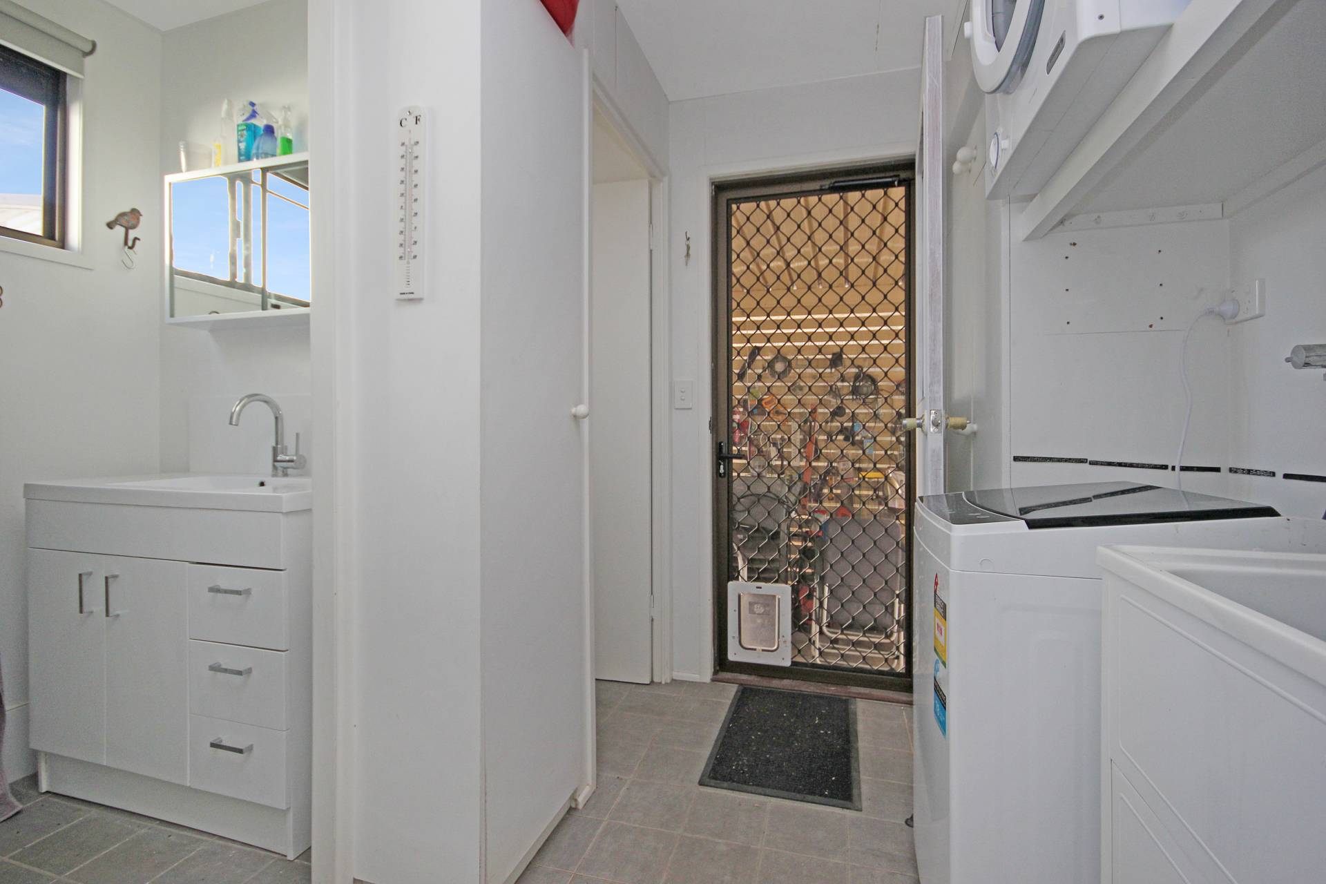 * Modern bathroom with toilet separate from shower and internal laundry